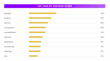 In the Overview tab, you’ll find our “Top Tags by AI Success Score” feature. This shows you which categories of search queries are performing best for your brand, making it easier to identify trends and opportunities in your data.